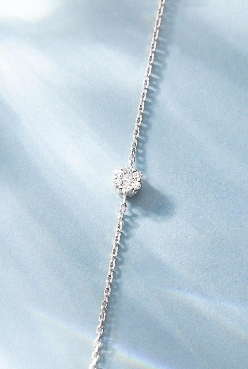 So Illusion Chain Bracelet For Women with 0.10ct Round Diamond in White Gold Cluster Setting
