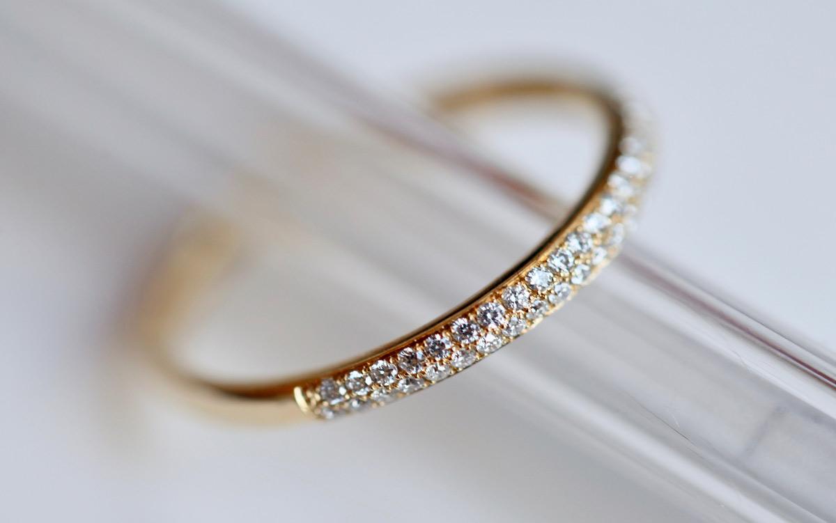 Любовное кольцо, элегантная золотая полоса, наполовину вымощенная бриллиантами в 0,21 карата. Поставляется на выбор из желтого, белого или розового золота.