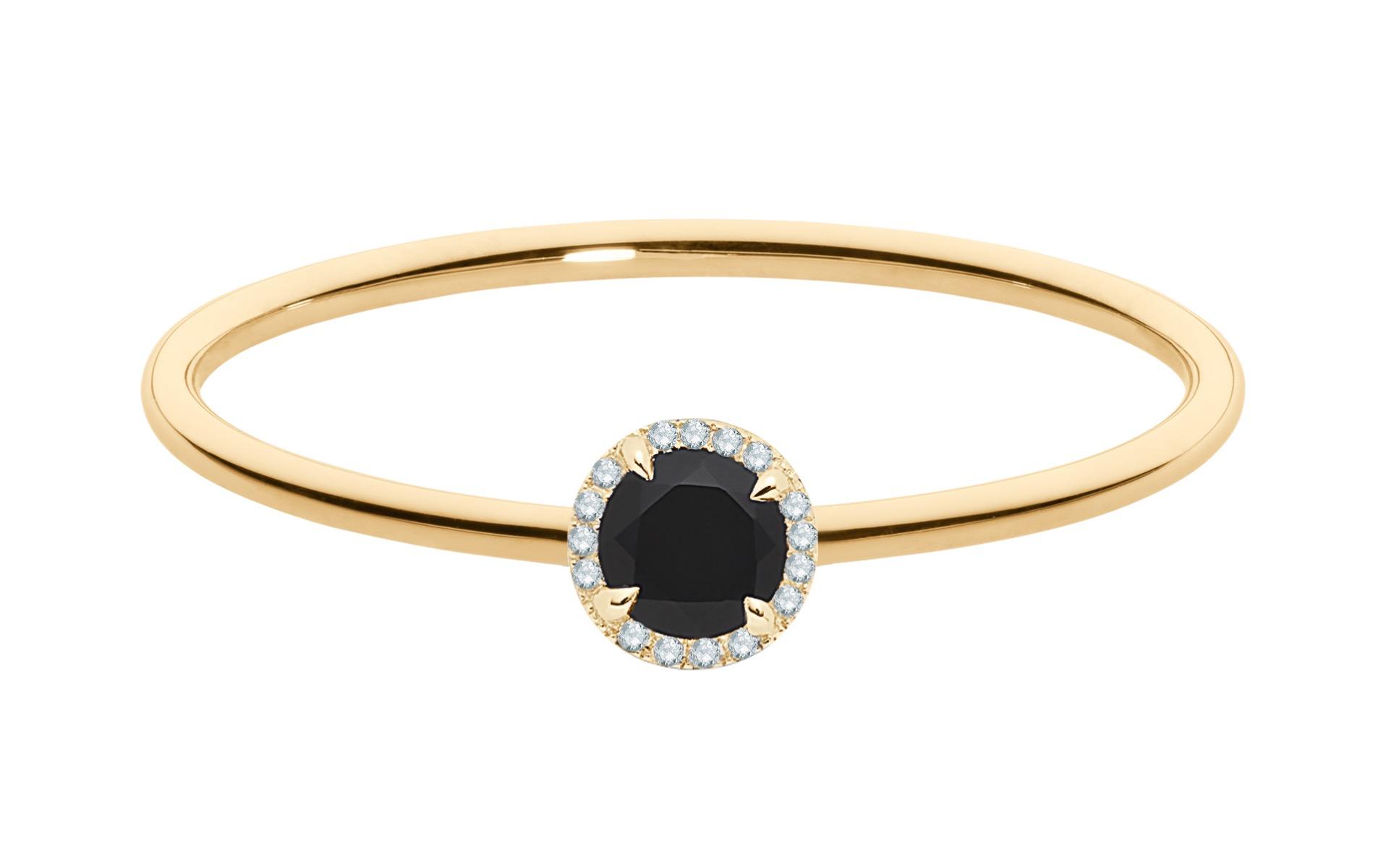 Только искры и контраст для очаровательного кольца с блестящим ониксом в центре из шестнадцати маленьких бриллиантов общим весом 1,05 карата. Это отличительное произведение поставляется в трех цветах золота.
