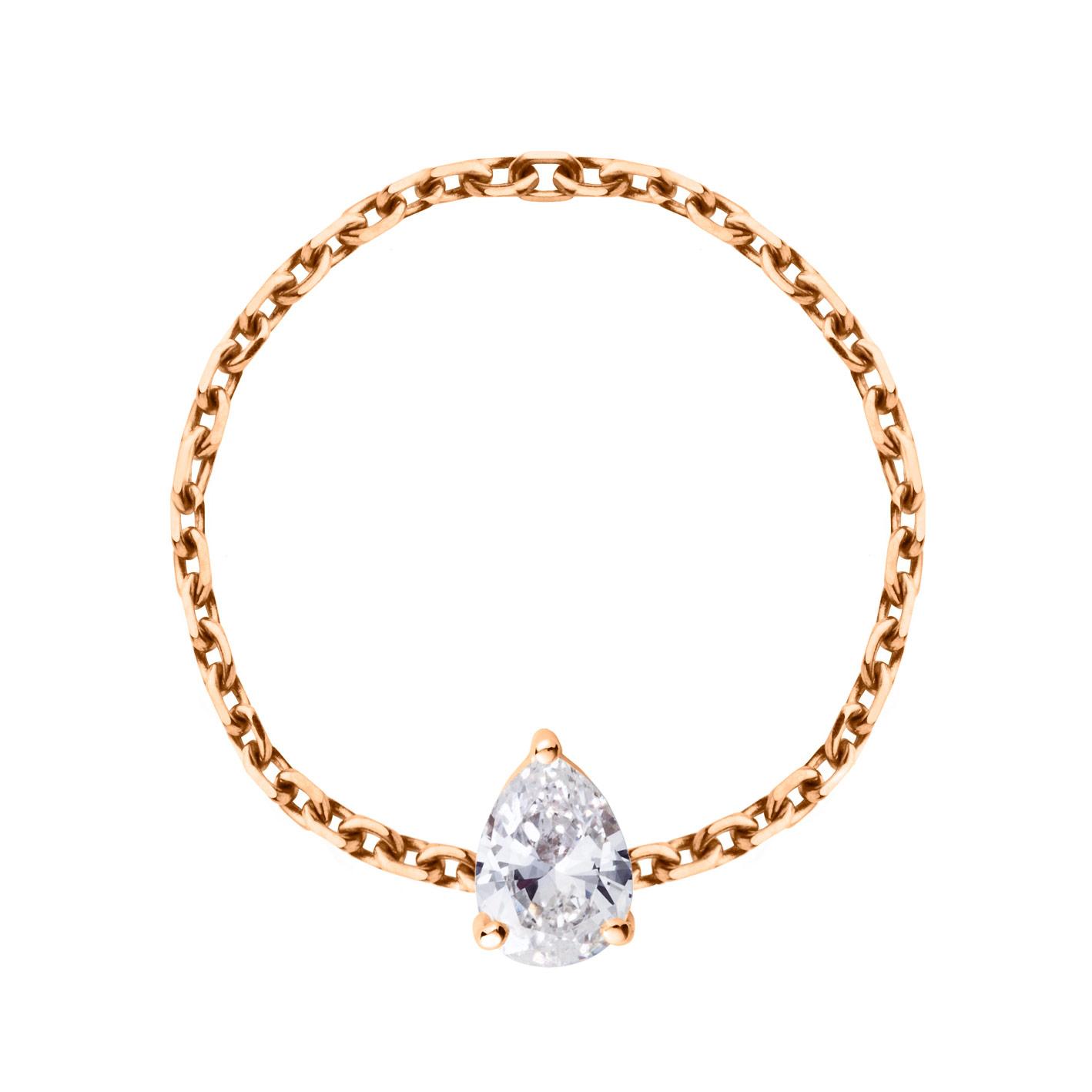 Розовое золото - это золото женственности. Это цепное кольцо сделано из этого металла, который высоко ценится женщинами. Он несет в своем центре алмазную грушу, также называемую «слеза радости солнца». Можно представить, что он упал прямо с небес, потому что его огонь возвращает свет так же быстро, как он его получает. В своих работах RedLine подчеркивает опыт и традиционные ноу-хау с простыми, изысканными и драгоценными камнями.