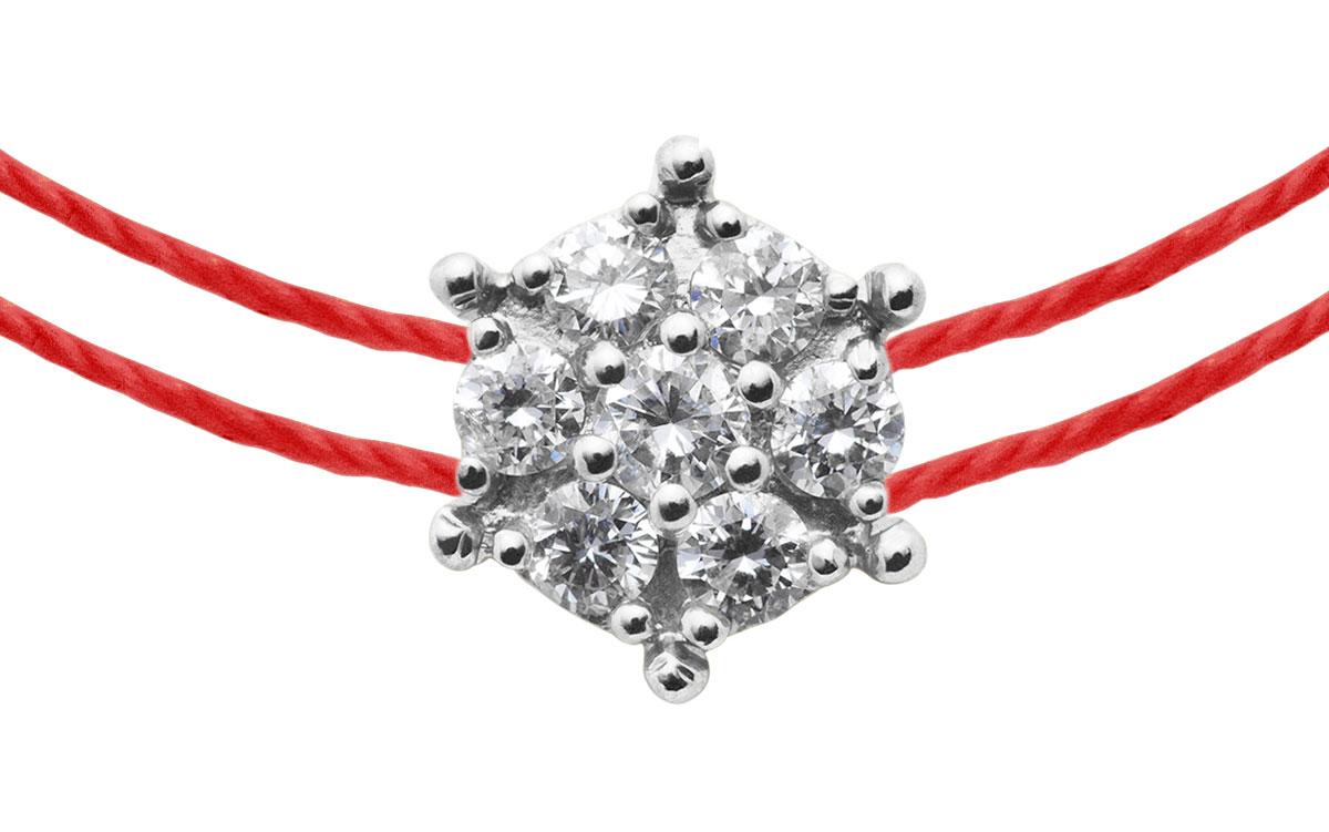 RedLine был вдохновлен драгоценностями прошлых лет для создания коллекции Babette. Семь бриллиантов общим весом 0,160 карата установлены на наборе когтей с утонченной и оригинальной эстетикой, придающей оправе звездообразный силуэт. Две пряжи RedLine переплетаются для большего веселья и сочетаний и придают изысканность этому великолепному браслету. Застежка из 18-каратного золота и шкала из трех колец отрегулируют размер этого драгоценного камня, который доступен в трех цветах золота и 80 цветов нитей.