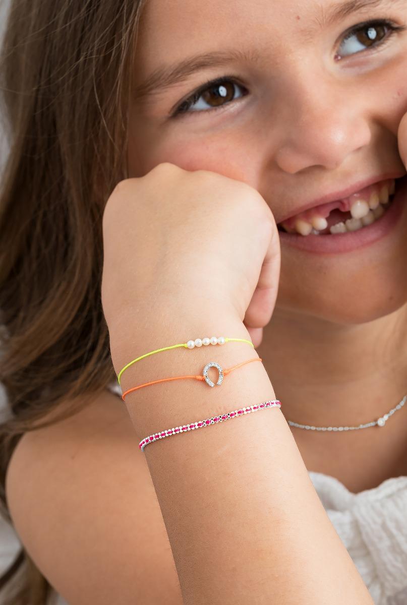 Fer À Cheval String Bracelet For Women with 0.04ct Round Diamond in White Gold Pavé Setting