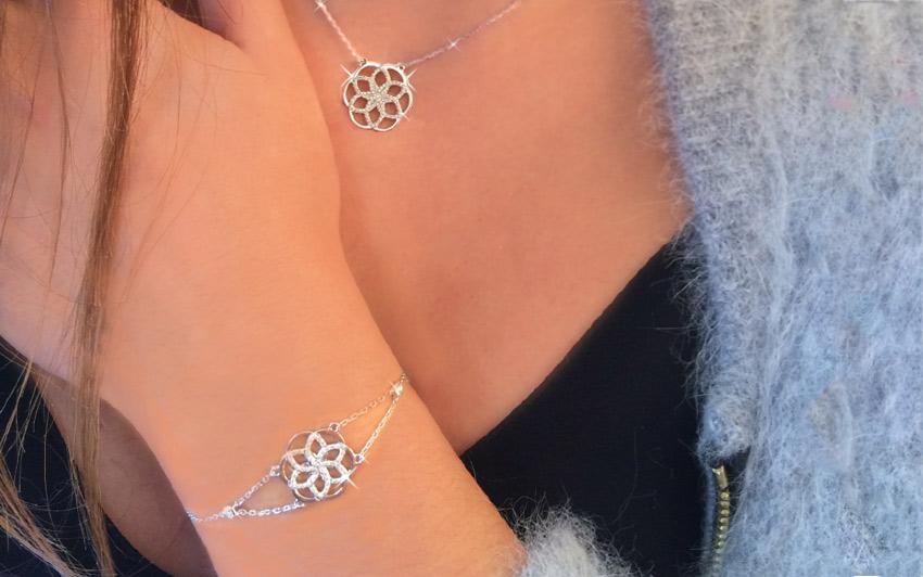 Белое золото, браслет Lise Браслет "2 звезды Pavé" с бриллиантовой цепочкой, Redline Bijoux