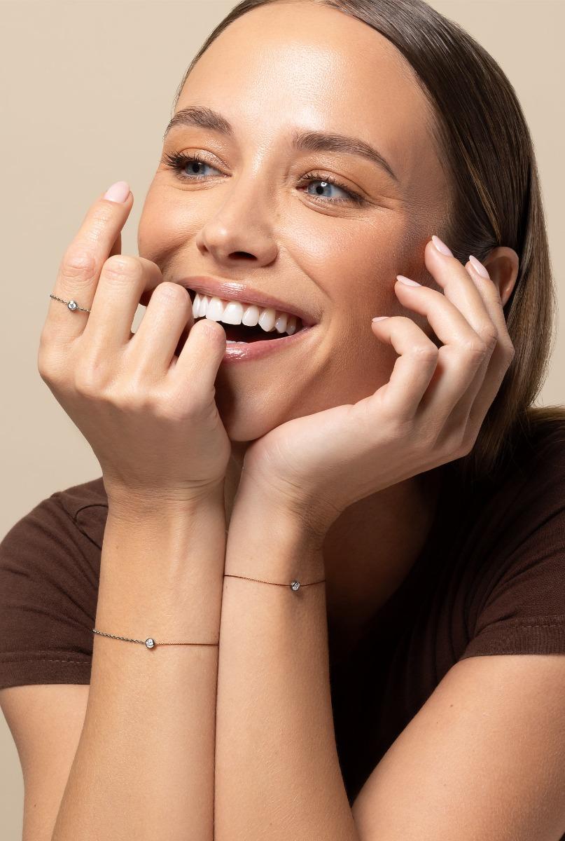 Pure String-Chain Bracelet For Women with 0.10ct Round Diamond in Black Gold Bezel Setting