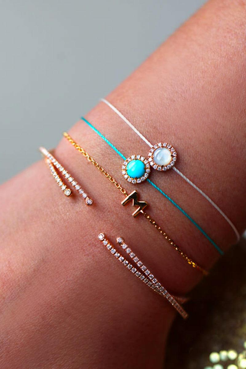Reine Turquoise String Bracelet For Women with 0.085ct Round Diamond in Yellow Gold Prong Setting