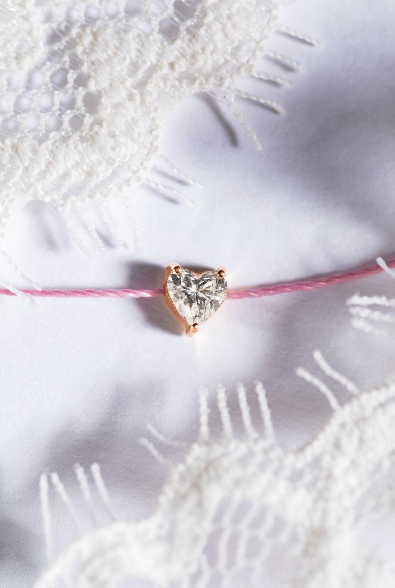 Sa Bien-Aimé String Bracelet For Women with 0.20ct Heart ShapedDiamond in Rose Gold Prong Setting