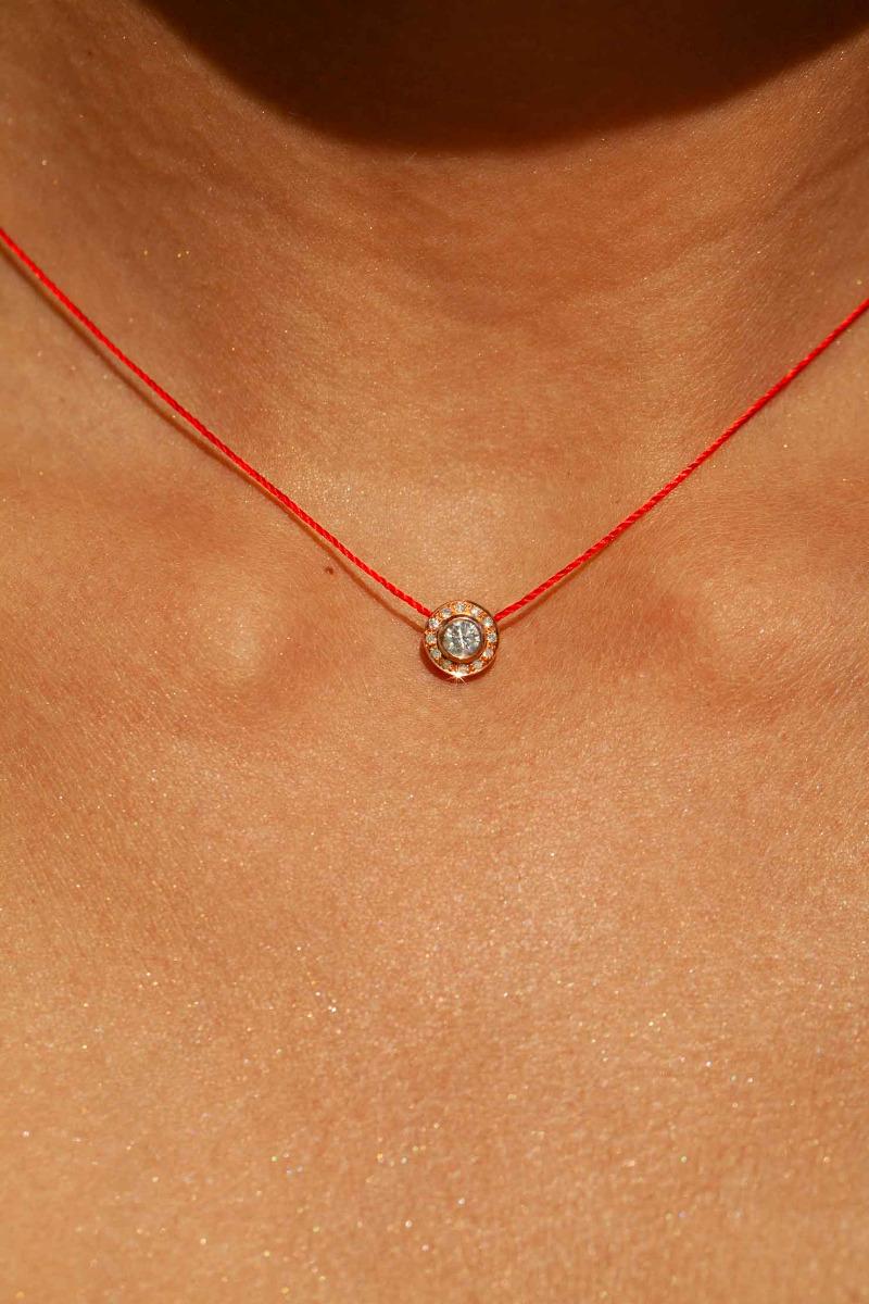 Итак, VIP ... Поскольку это великолепное ювелирное изделие со всеми бриллиантами ослепляет своим весом 0,26 карата, оно соблазнит женщин, ищущих ожерелье оригинального и ценного качества. Алмаз весом 0,20 карата окружен двенадцатью маленькими бриллиантами на золотой оправе, к которой проволока RedLine приносит свою изысканность. Застежка из 18-каратного золота и шкала из трех колец отрегулируют размер драгоценного камня, имеющегося в четырех цветах золота и 80 цветах ниток.