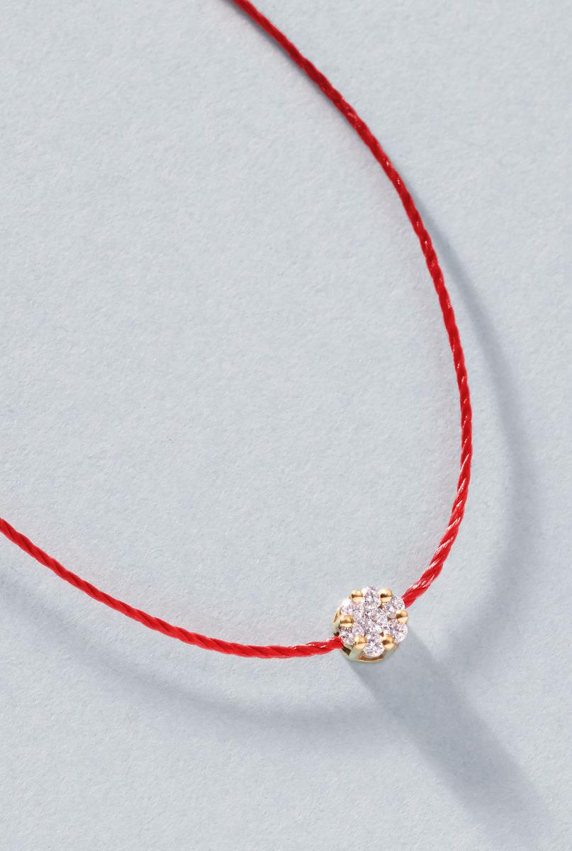 So Illusion String Necklace For Women with 0.10ct Round Diamond in Yellow Gold Cluster Setting