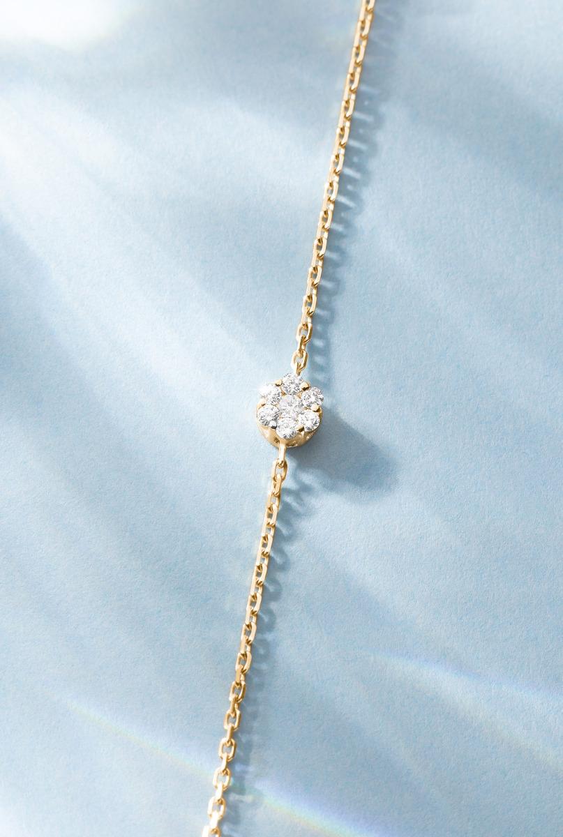 So Illusion Chain Bracelet For Women with 0.10ct Round Diamond in Yellow Gold Cluster Setting